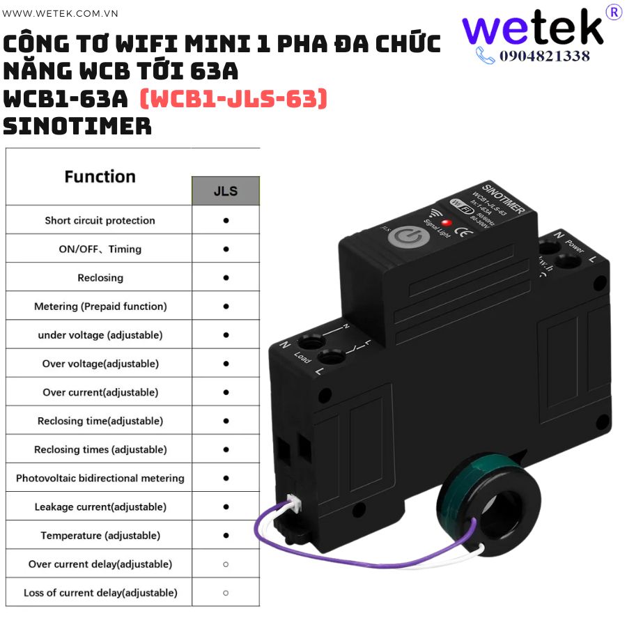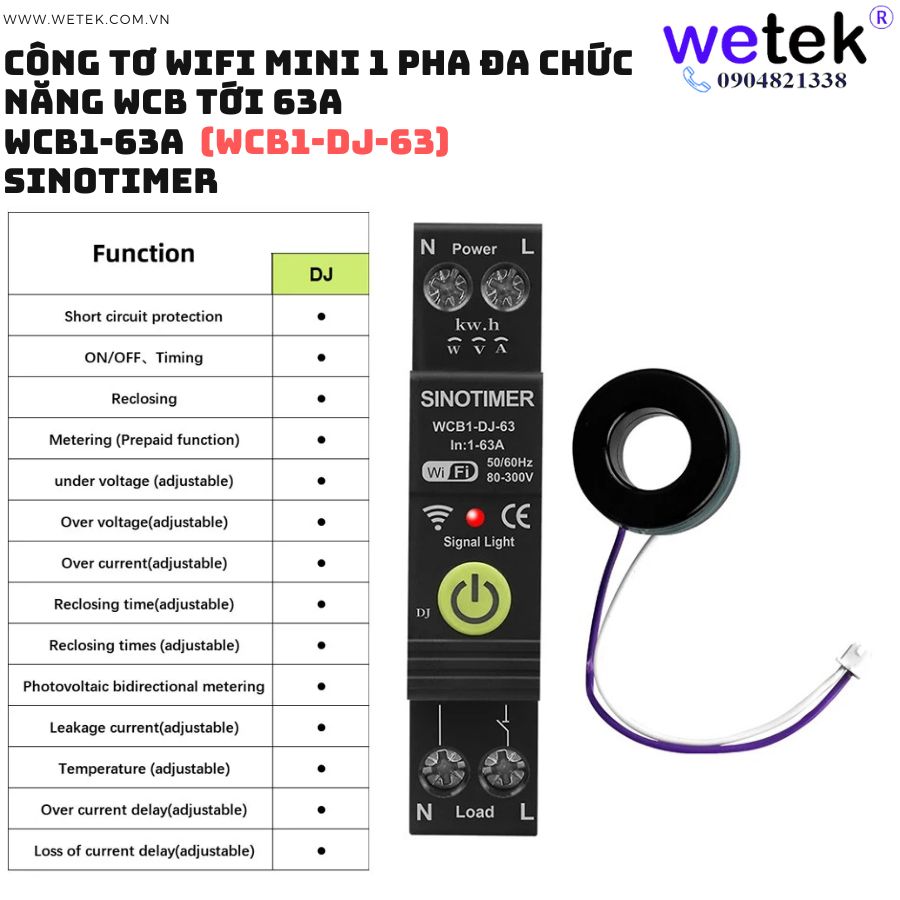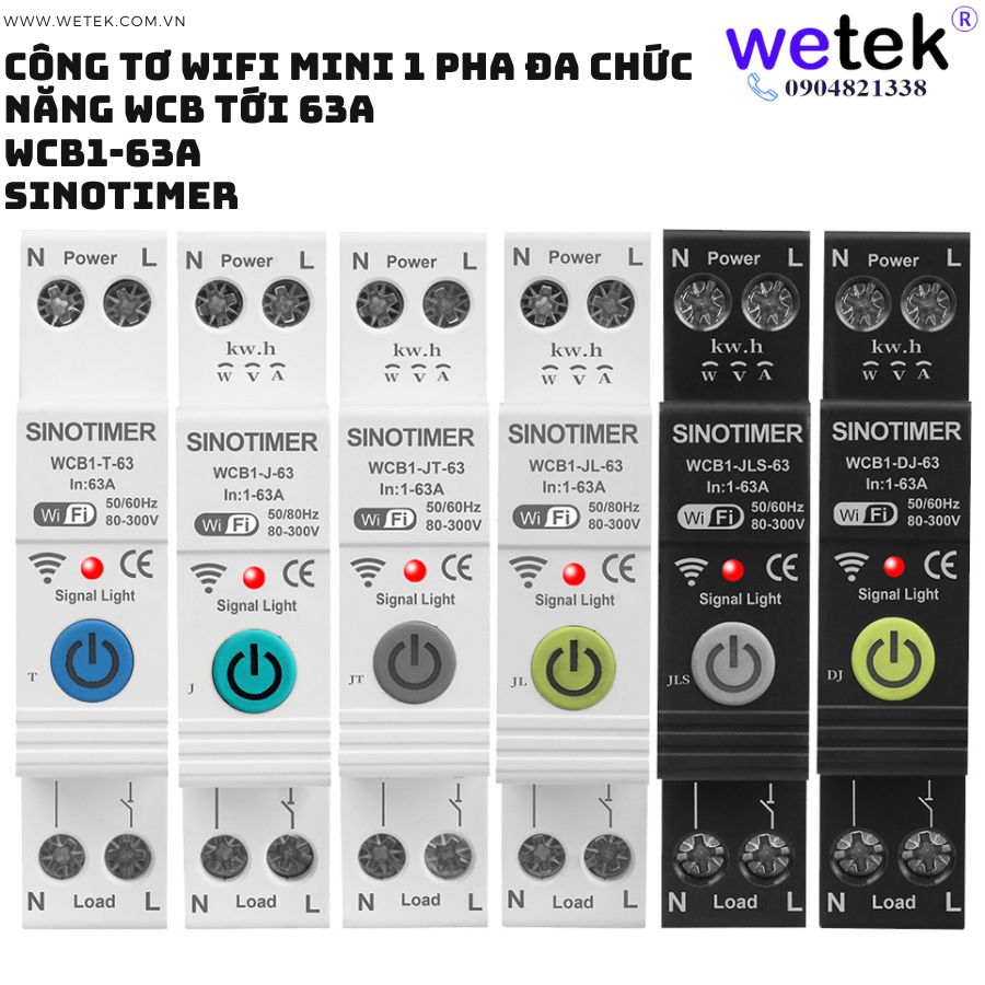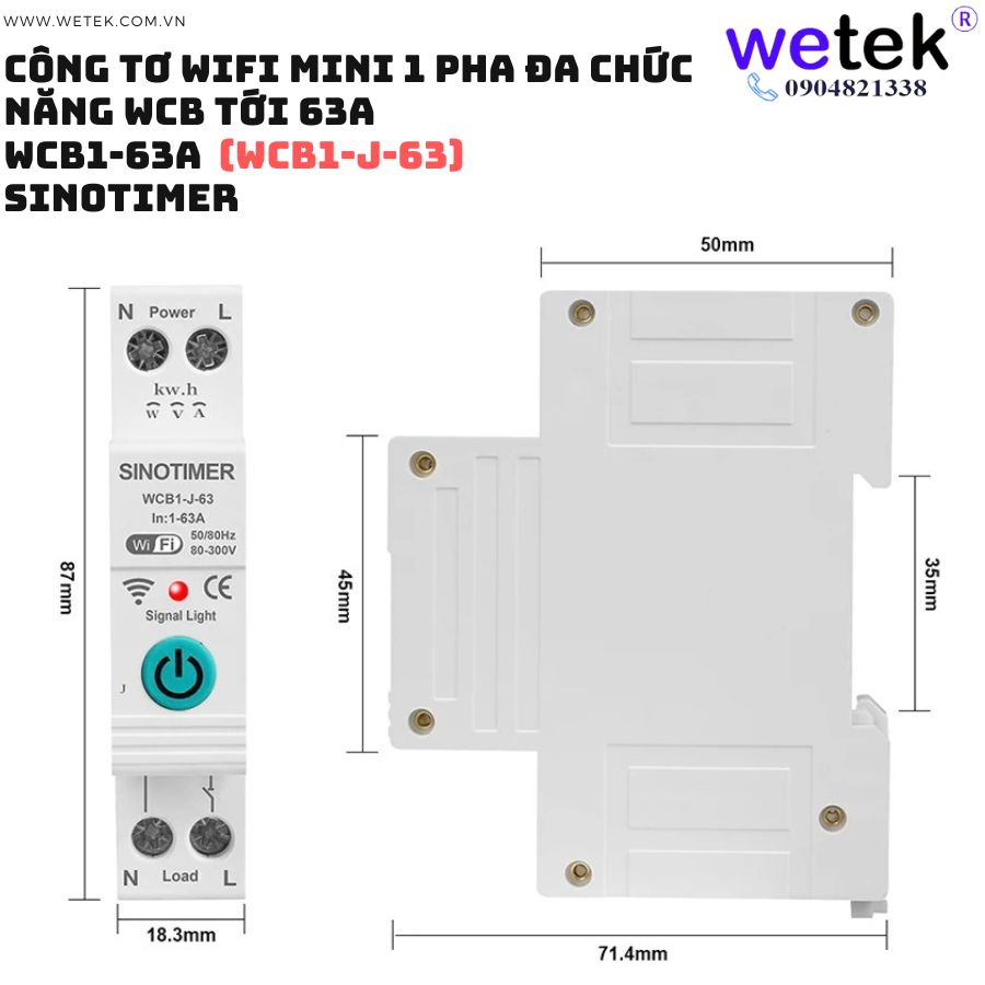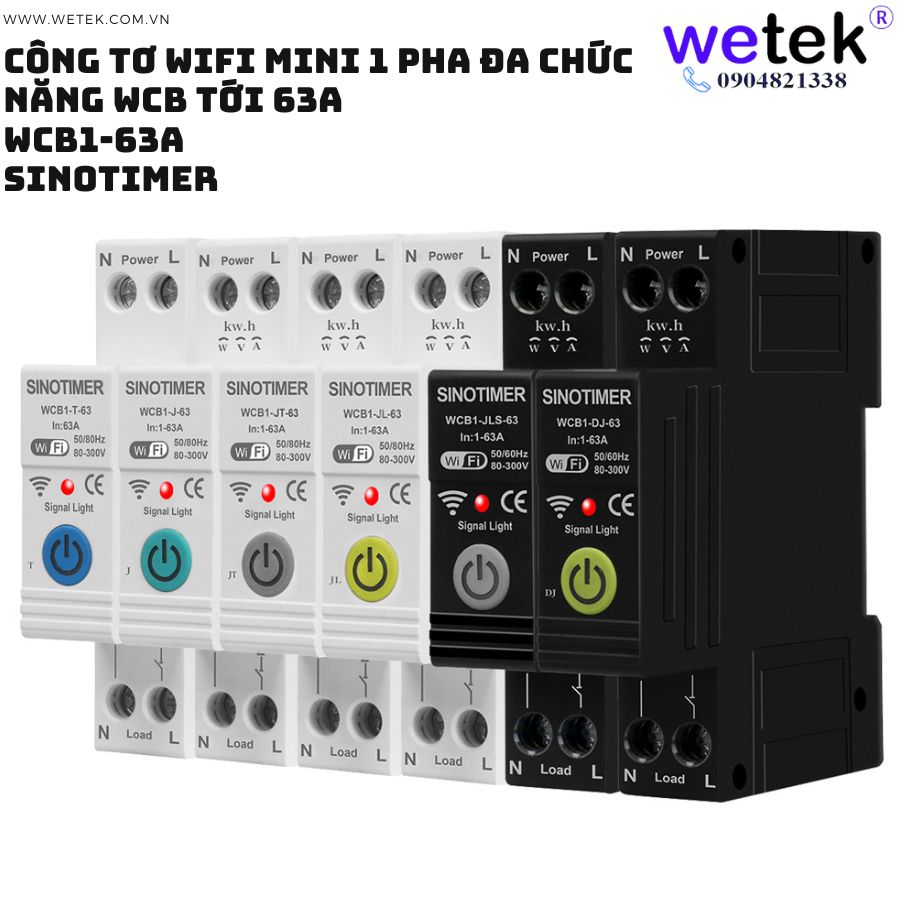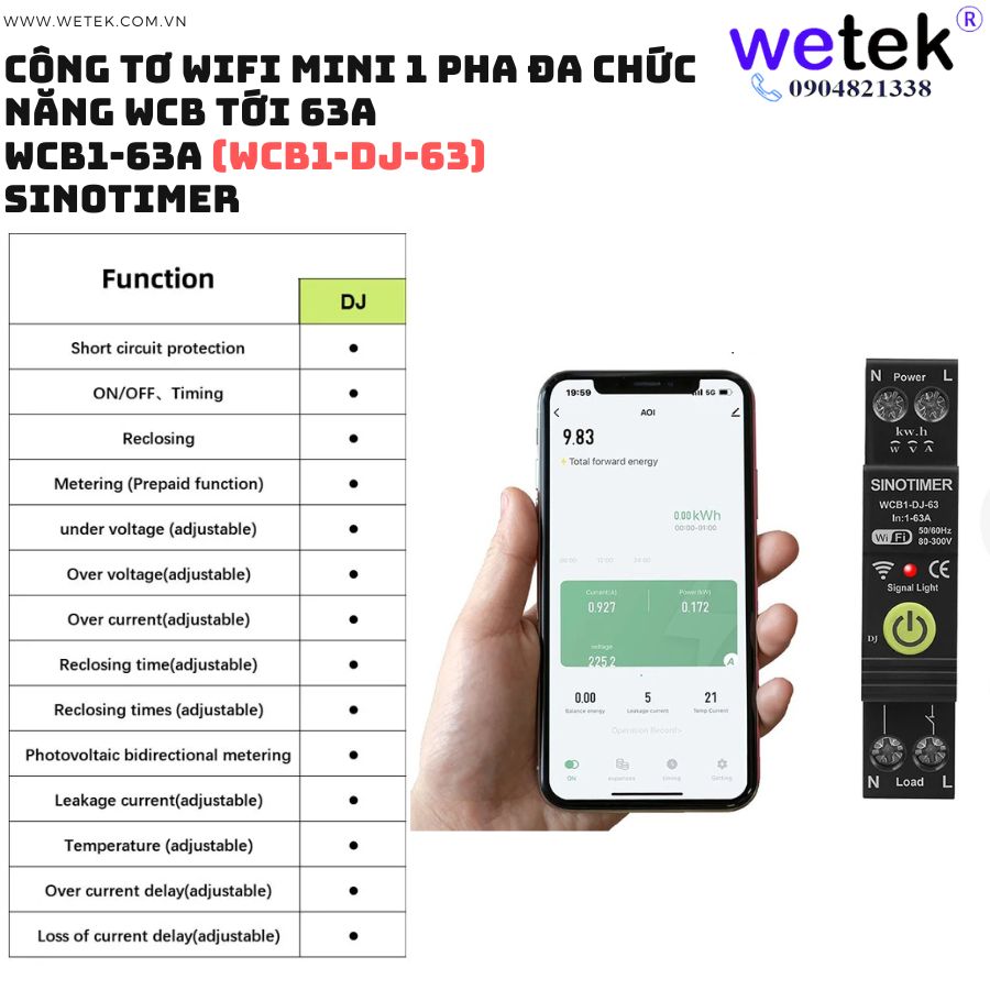 Át tô mát wifi kiêm công tơ mini WCB1-63A 80V~300V (cao áp, thấp áp, quá dòng, dòng rò, đo hai chiều solar...)