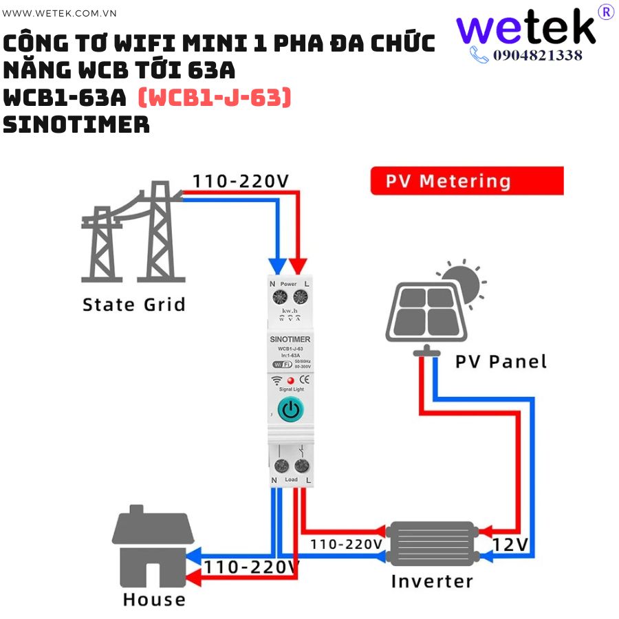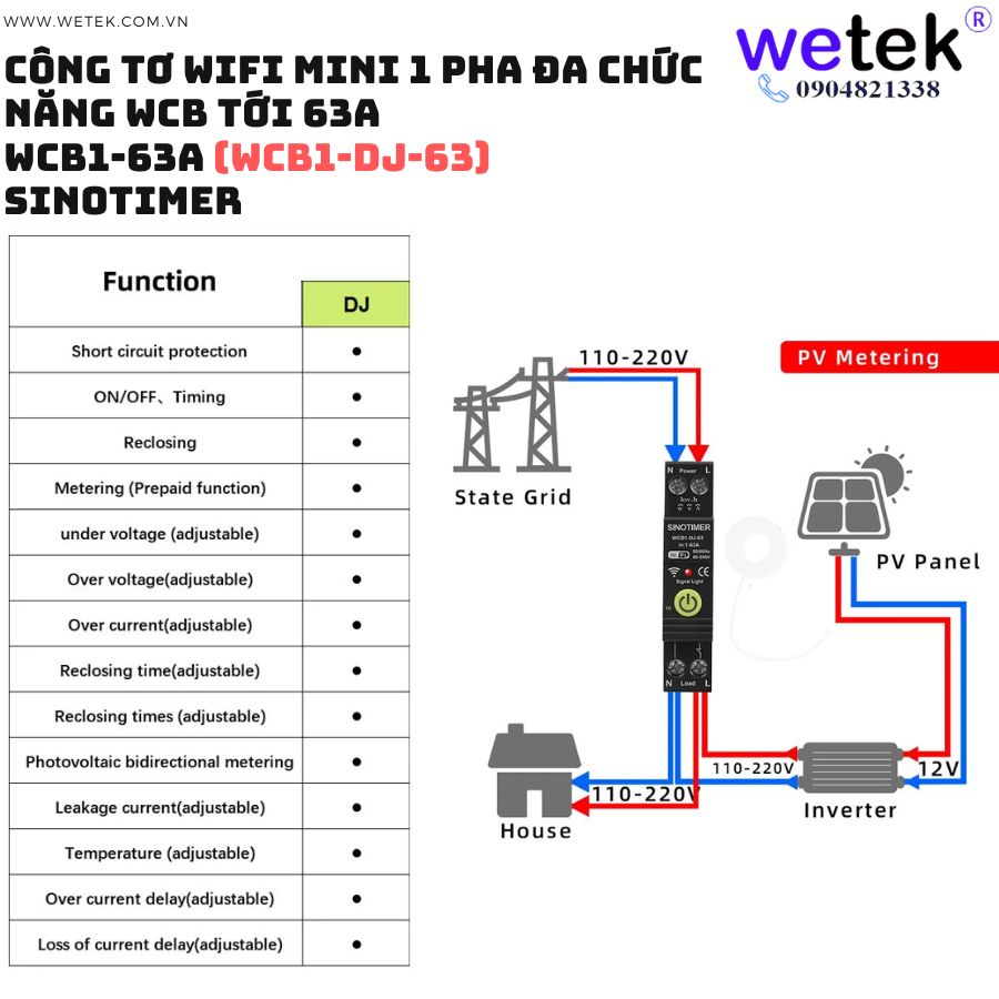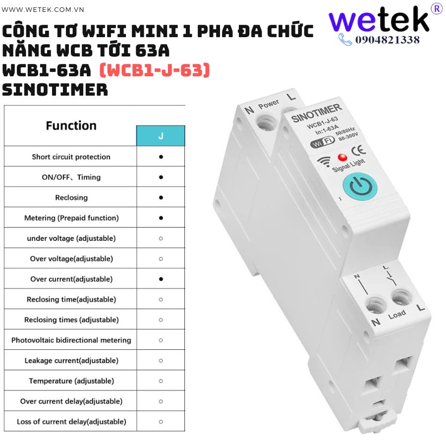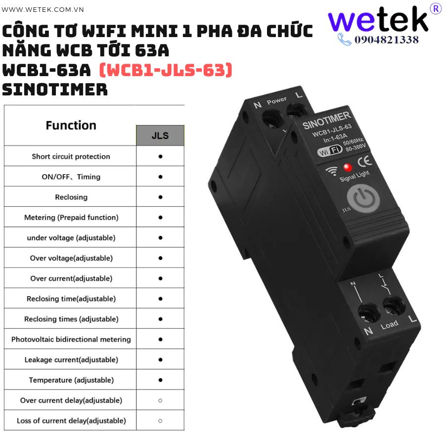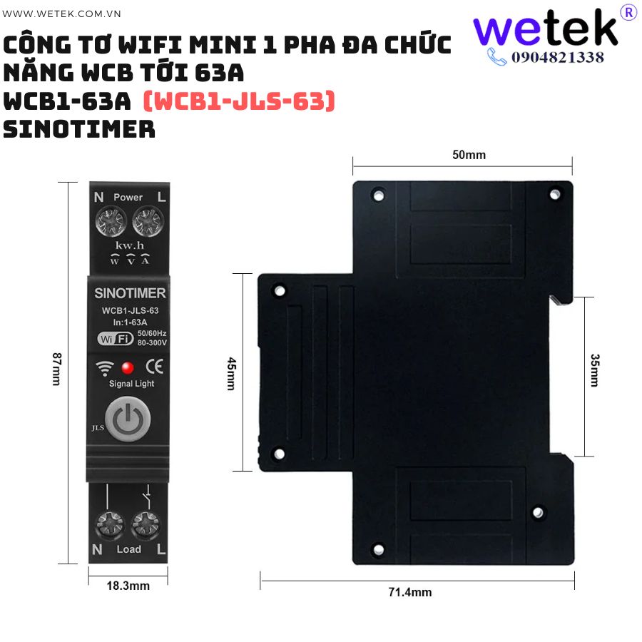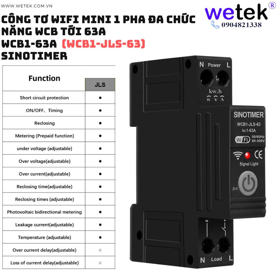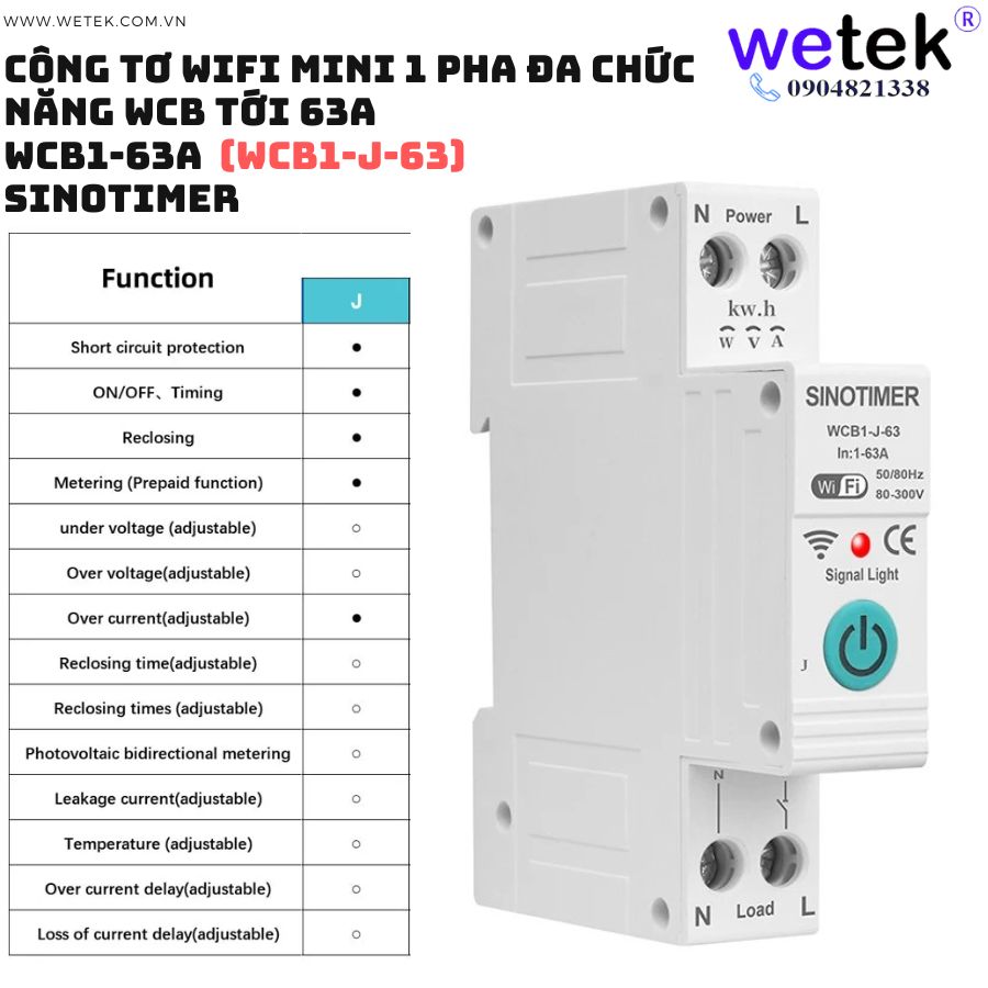 Át tô mát wifi kiêm công tơ mini WCB1-63A 80V~300V (cao áp, thấp áp, quá dòng, dòng rò, đo hai chiều solar...)
