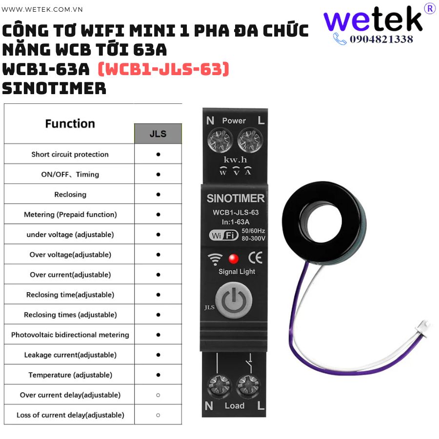 Át tô mát wifi kiêm công tơ mini WCB1-63A 1~63A 80V~300V 50/60Hz (cao áp, thấp áp, quá dòng, dòng rò, đo hai chiều solar, tuya app smart life...)