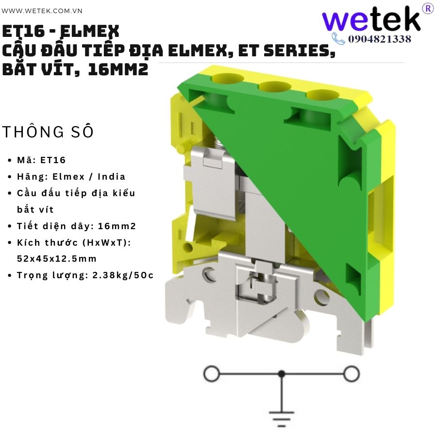 4/ Cầu đấu tiếp địa Elmex, ET Series, bắt vít, 16mm2 Mã: ET16 (Phụ kiện: Nhãn tên mã KN12 (5c) ) Made in India