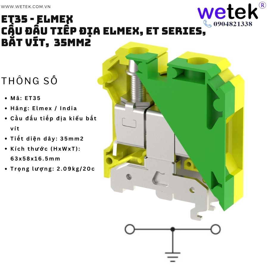 5/ Cầu đấu tiếp địa Elmex, ET Series, bắt vít, 35mm2 Mã: ET35 (Phụ kiện: Nhãn tên mã KN12 (5c) ) Made in India