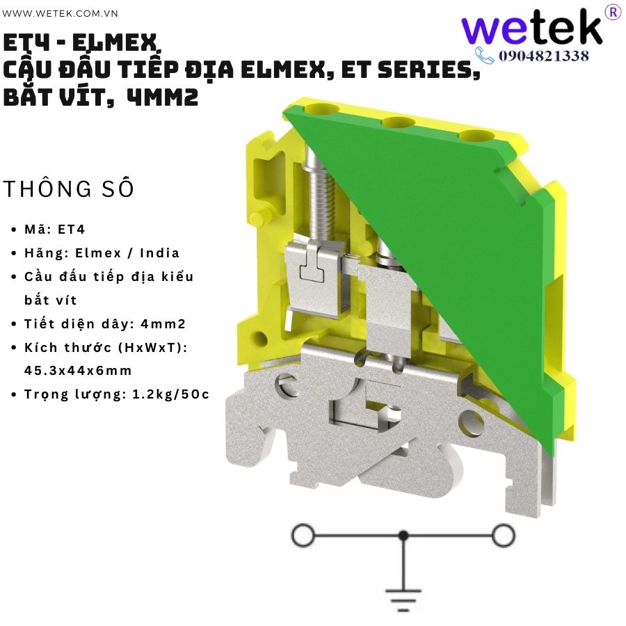 1/ Cầu đấu tiếp địa Elmex, ET Series, bắt vít, 4mm2 Mã: ET4 (Phụ kiện: Nhãn tên mã KN5.5 (10c) ) Made in India