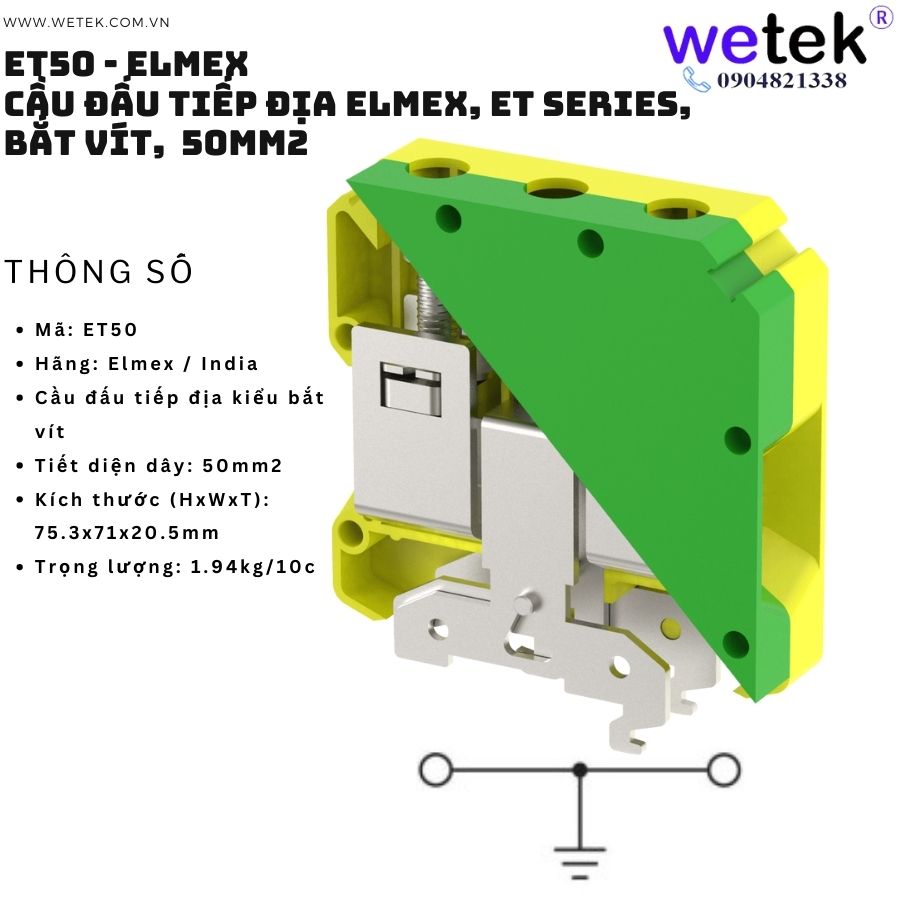 Cầu đấu tiếp địa Elmex loại tiêu chuẩn, ET series, loại bắt vít, cho dây 4 6 10 16 35 50 mm2 (ET4 ET6 ET10 ET16 ET35 ET50)