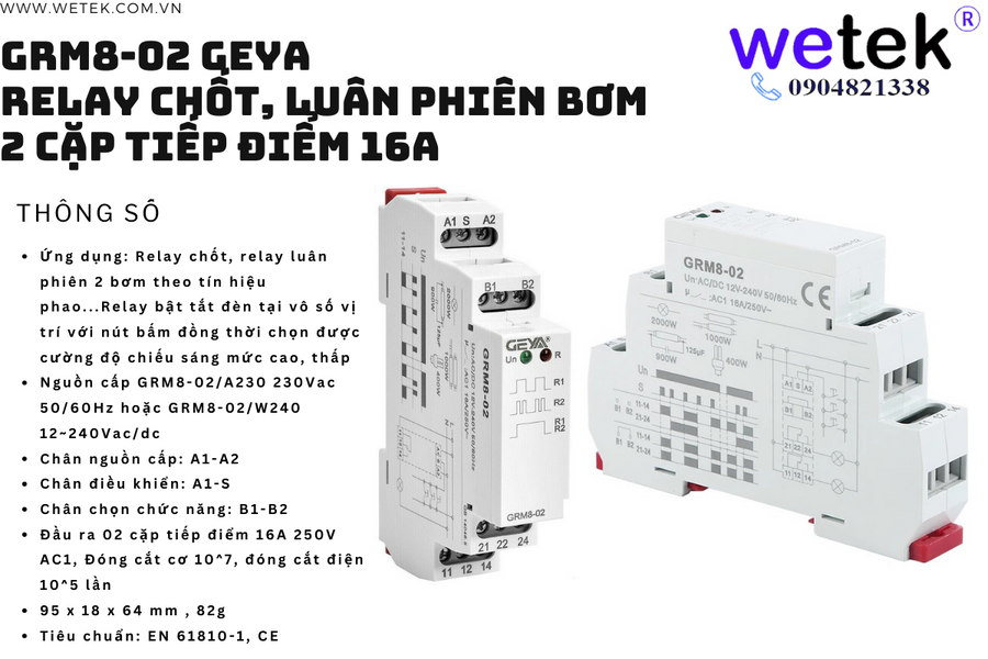 Geya GRM8-02 Relay chốt latching relay, luân phiên theo xung, rẻ nhất, thay thế hoàn toàn G4Q